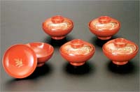 | 川連型吸物椀 御所車 5客組(洗朱・漆) | |||